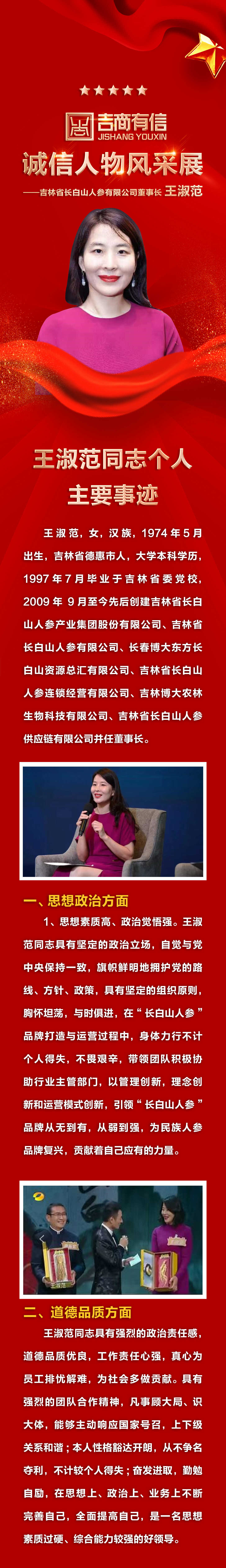 吉商有信-诚信人物风采展——吉林省长白山人参有限公司董事长 王淑范