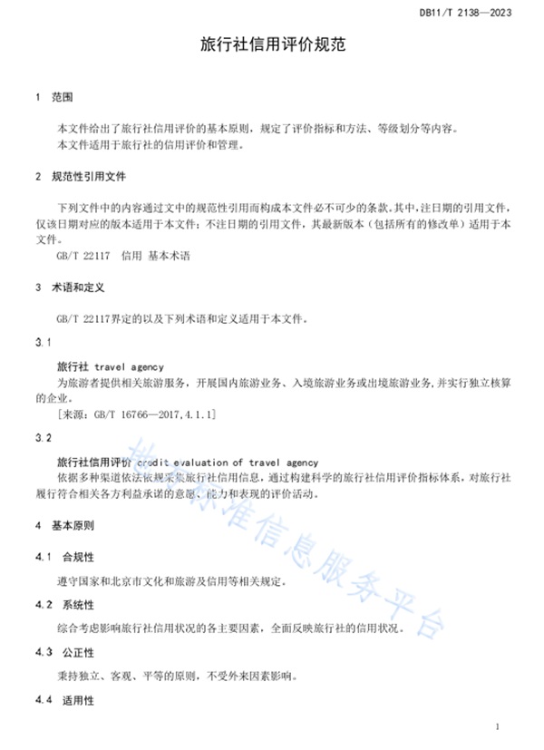 北京:《旅行社信用评价规范》